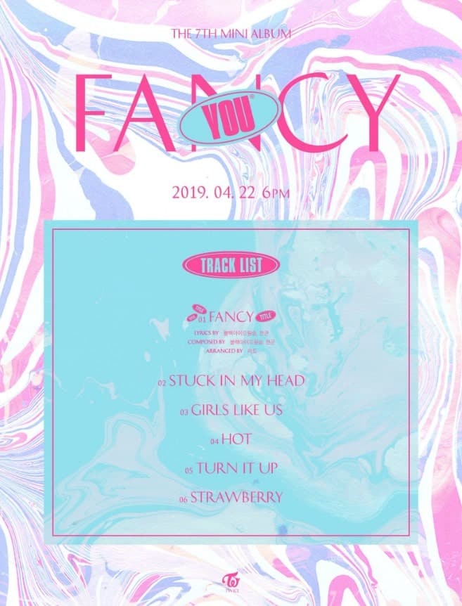 Teaser fotoğraflarıyla birlikte TWICE ayrıca şarkı listesini de açıkladı. Başlık şarkısı “Fancy”de dahil olmak üzere albümde 6 şarkı bulunuyor. Diğer şarkıların isimleri ise “Stuck In My Head,” “Girls Like Us,” “Hot,” “Turn It Up” ve “Strawberry.”