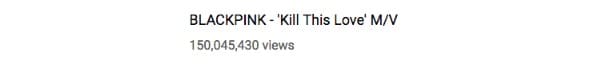 11 Nisan günü öğleden sonra saat 3.30’da (KST), “Kill This Love” 150 milyon izlenmeye ulaştı. Bu başarıya 6 gün, 3 saat ve 30 dakikada ulaşıldı.