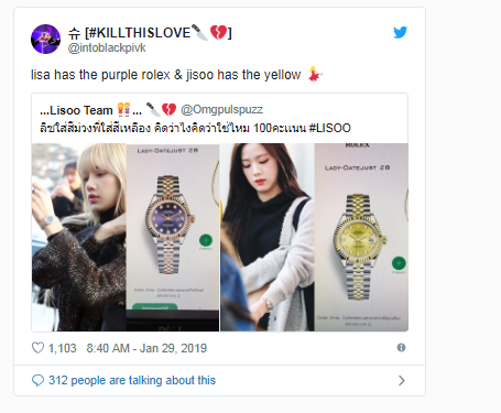 Lisa ve Jisoo birçok kez aynı kolyeyi, yüzükleri ve daha birçok şeyi takarak dostluklarının güçlü olduğunu herkese gösteriyorlardı ancak son günlerde netizenler üyelerin taktıkları saatlerin lüks ve yüksek fiyatlı saatler üretmesiyle tanınan Rolex firmasına ait olduğunu tespit ettiler ve bunun hakkında konuşmaya başladılar. İki güzel idol de Rolex’in Lady-Datejust koleksiyonuna ait olan saatleri takıyorlardı.