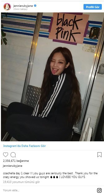 Jennie, yayımladığı Instagram gönderisinin altına, “Coachella’daki 1. gün atlatıldı !!! Siz cidden en iyisisiniz. Bu gece bize aktardığınız çılgın enerji için çok teşekkür ederim.” yazdı. Netizenler ise gönderinin altında, “Seni seviyorum.”, “Sen en iyisisin.” ve “Harikaydın Jennie” gibi yorumlar attılar.