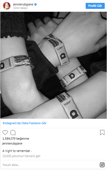 Ayrıca, tüm Black Pink üyelerinin Coachella bilekliklerini taktığı bir fotoğraf koyarak “Hatırlanacak bir gece.” notuyla başka bir fotoğraf daha paylaştı.