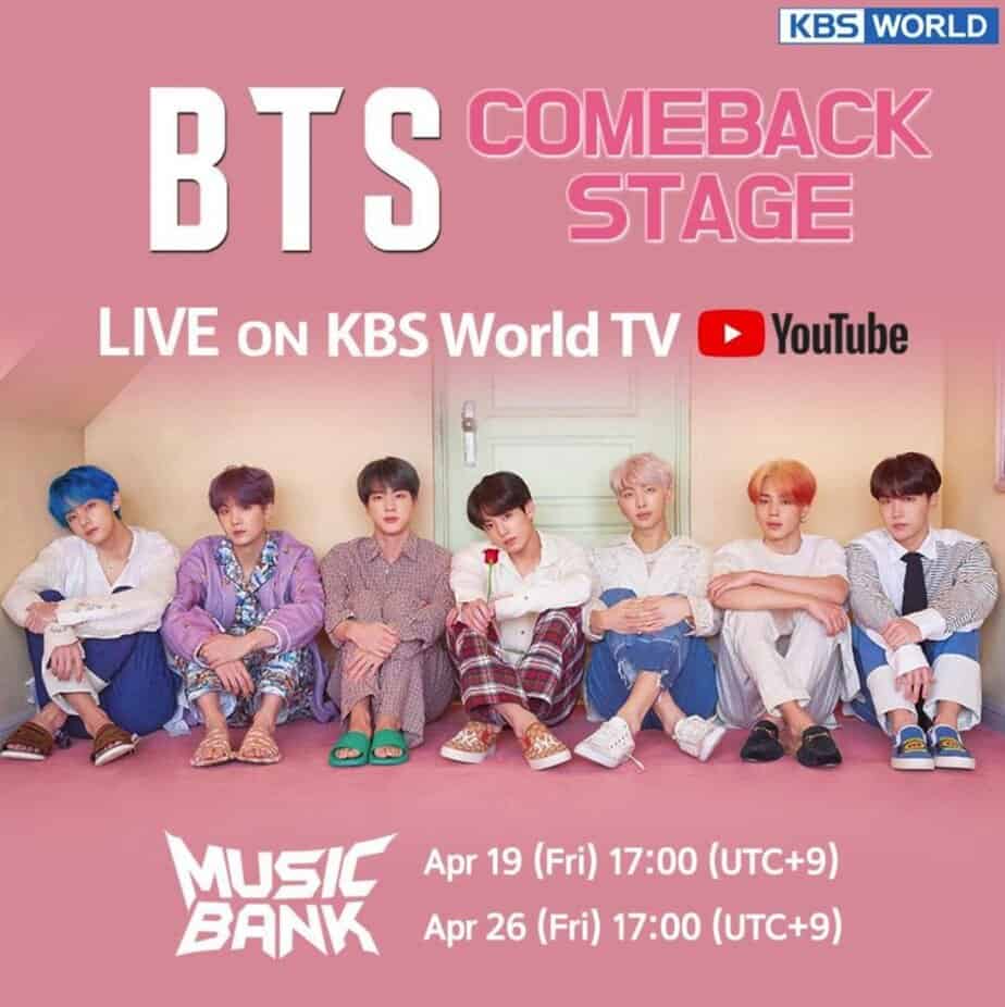 BTS, 19 Nisan’da KBS’de yayımlanan Music Bank’te, “Dionysus” ve “Boy With Luv” comeback performansını gerçekleştirdi.
