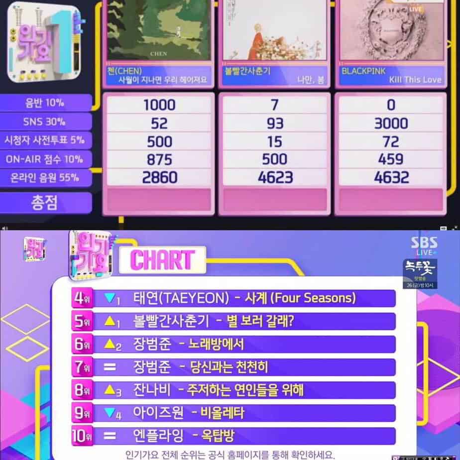 SBS İnkigayo, 17 Mart 2013’ten beri müzik listeleri yapan bir program. O günden bu yana birçok tartışmanın da odağı oldu. 2017 yılında, gerçek zamanlı oylamaları kaldırdılar ve 2019’da albüm skorunu %5 arttırdılar.