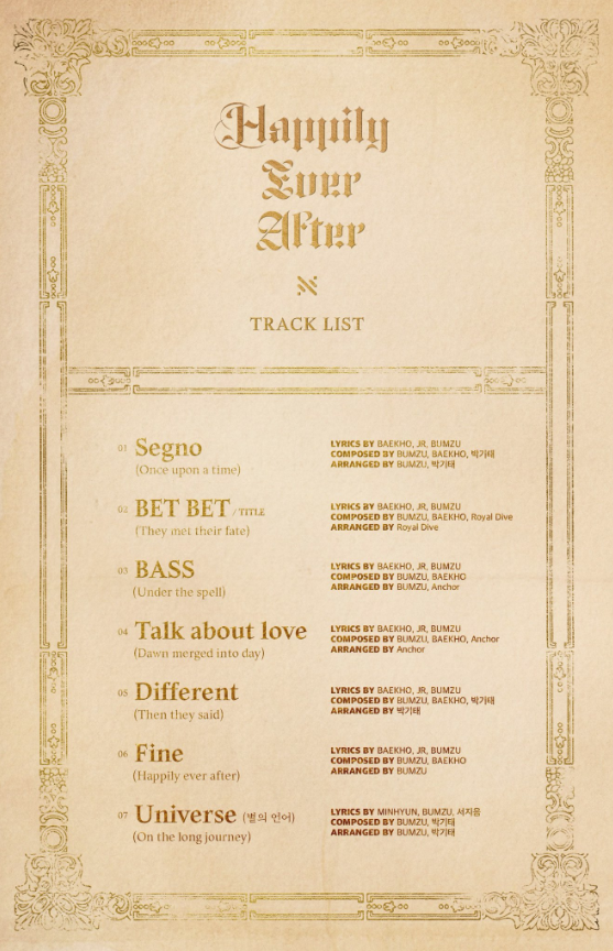 NU’EST 29 Nisanda uzun zamandır heyecanla beklenen geri dönüşlerini gerçekleştirecek. Bunun için grup “Happily Ever After” albümlerindeki şarkıların listesini yayınladı. Şarkılarda Baekho ve JR’ın aktif olarak yer aldığı görülüyor.