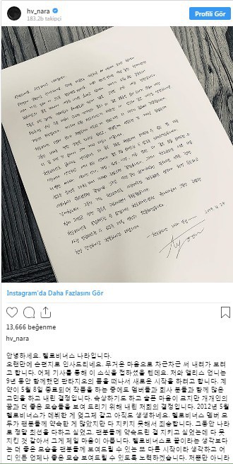 Son olarak, siz tatlı hayranlarıma Hello Venus olarak geri dönemeyeceğim belki, ama yine de bir zamanlar Hello Venus’un Nara’sına verdiğiniz değeri tekrar almak için hep çok çalışacağım. Umarım hayatınız boyunca sağlıklı ve mutlu olursunuz.