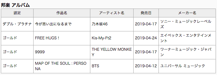Japonya Kayıt Endüstrisi Birliği (RIAJ), 9 Mayıs’ta, nisan ayı için yeni sertifika listesini paylaştı. BTS’in son albümü, 100.000 birim kriterine ulaşarak listede yer almayı başardı.