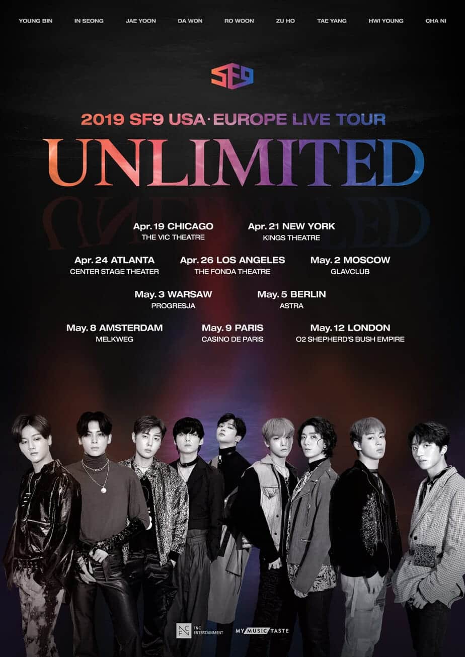 Amerika konser turu; SF9’ın Chicago ile başlayıp New York, Atlanta, Los Angeles ile devam eden ” 2019 USA – Europe Live Tour [Unlimited] “ dünya turunun ilk ayağıydı.