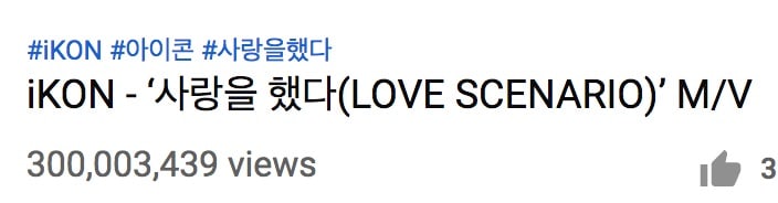 iKON‘un “Love Scenario” şarkısı 300 Milyon görüntülenme ile istikrarlı başarısını sürdürüyor.
