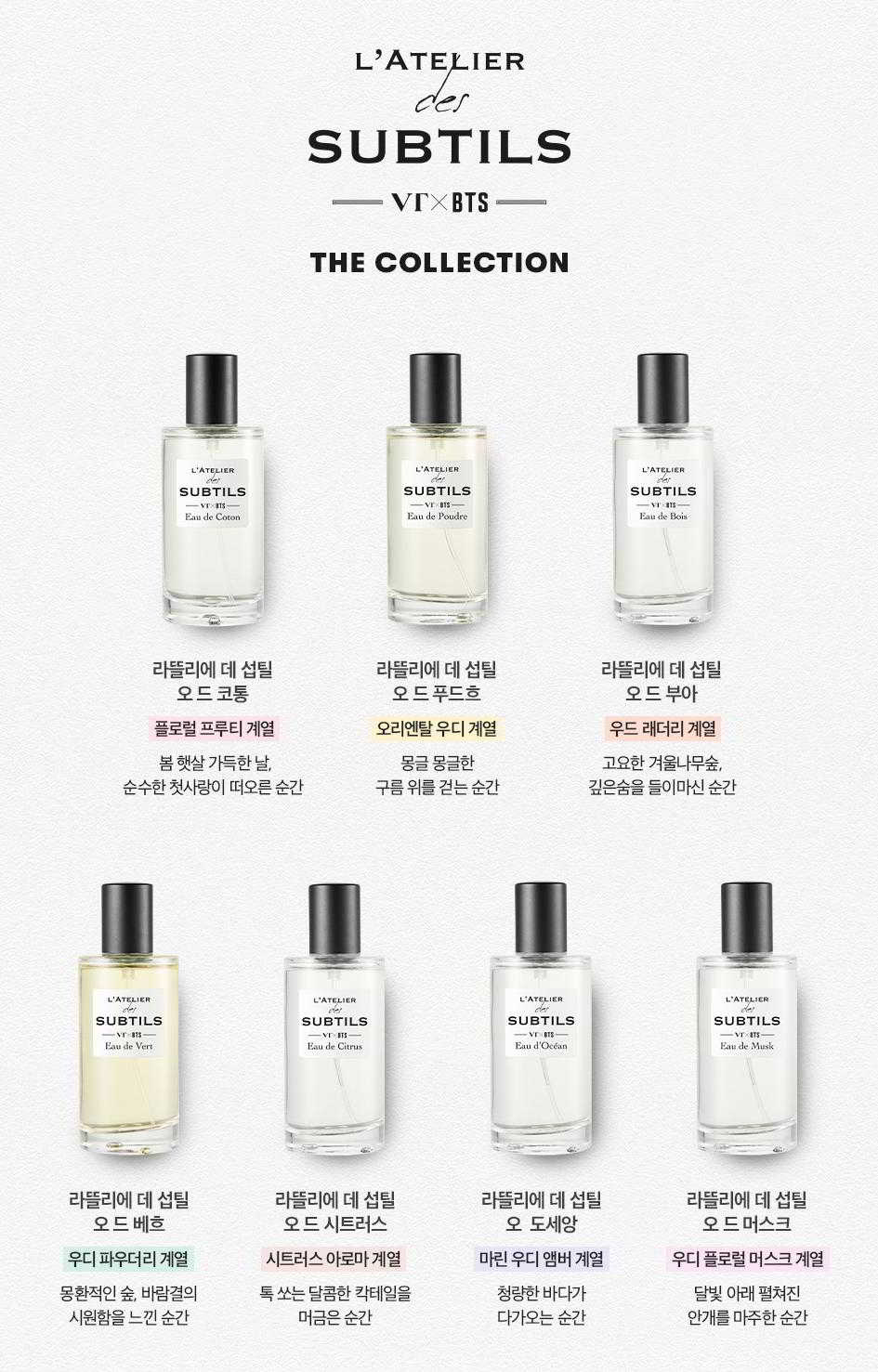 Bir süredir ortaklık yapan BTS ve VT Cosmetics, yeni projeleri olarak, “L’Atelier des Subtils” isimli yeni bir parfüm serisi piyasaya sürüyor.