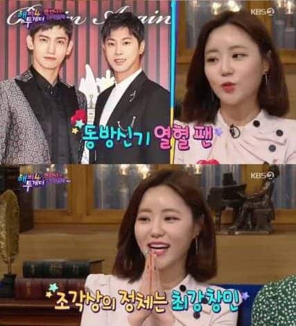 24 Mayıs’da, sunucu ve aynı zamanda eski KARA üyesi Youngji‘nin ablası olan Heo Song Yeon, Happy Together‘a konuk oldu. Programda büyük bir TVXQ fanı olduğunu açıkladı ve gençken yaptığı planı anlattı.