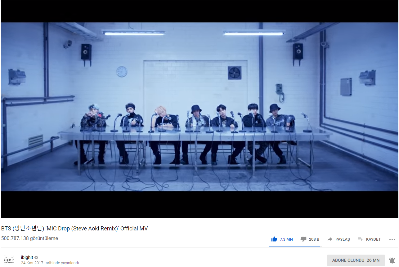 24 Kasım 2017’de yayımlanan “MIC Drop”, 1.5 yıl içerisinde 500 milyon izlenmeye ulaşırken; BTS, YouTube’da bu başarıya ulaşmış tek Koreli grup oldu.