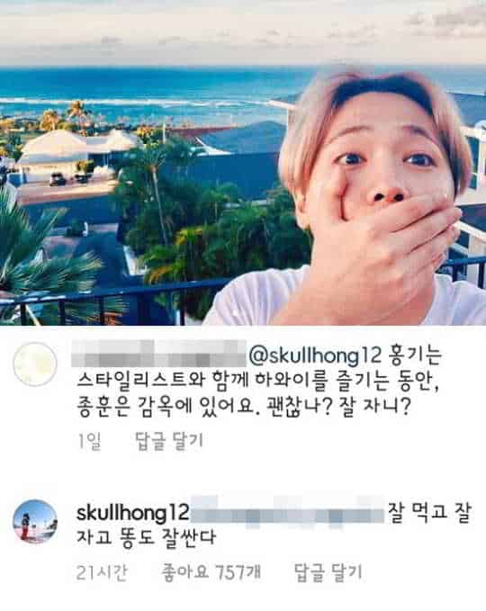 Yorum; “Siz ve stilistiniz Hawaii’de eğlenirken, Choi Jong Hoon hapishanede. Bu durumdan memnun musun? Geceleri rahat uyuyabiliyor musun?