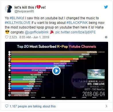 BlackPink bir süredir YouTube‘daki en çok abonesi olan ikinci K-Pop kanalıydı ve 1 Haziran‘da da en çok abonesi olan birinci kanal haline geldi.