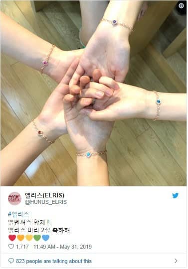 Bunu kutlamak için, üyeler 31 Mayıs‘ta Twitter hesaplarında aynı anda beş üyenin beş farklı ve eşsiz bilezikler taktığı kareyi paylaştılar. Gönderideki not ise şöyleydi: “El-vengers birleşin! ELRIS’in 2. doğum günü kutlu olsun!”
