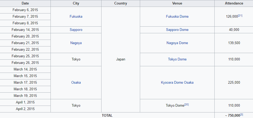 7. Bunlar konser alanının en yüksek kapasitesinin rakamları, kaç bilet satıldığının değil. Olay şu ki 55,000 kapasiteli Tokyo Dome’da konser verirseniz, ne kadar bilet satıldığına bakılmaksızın 55,000 diye hesaplanır. Korelilerin beyninin olmaması şaşırtıcı değil