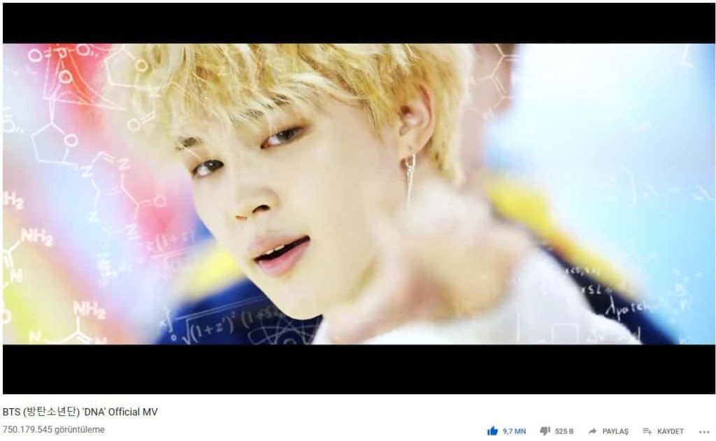 18 Eylül 2017’de yayımlanan “DNA”, bu başarıya yaklaşık 1 yıl 9 ay içerisinde ulaştı. Ayrıca müzik videosu, yalnızca erkek grupları arasında değil, genel K-Pop grupları arasında da, BLACKPINK’in “Ddu Du Ddu Du”sunun ardından, 750 milyon görüntüleme kaydetmiş, ikinci K-Pop grubu müzik videosu oldu.