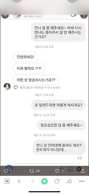 “Bunun hakkında sessiz kalacaktım ama burda mağdur olan tek ben değilim galibaㅠㅠㅠㅠ~~~~debut yapalı daha 1 yıl olmamış o kişi uyuşturucu aramak için orada ve diğeri de fanların verdiği hediyeleri kız arkadaşına veriyor. Bu mentaliteyle beni takmıyorsun değil mi~~~~~~~”