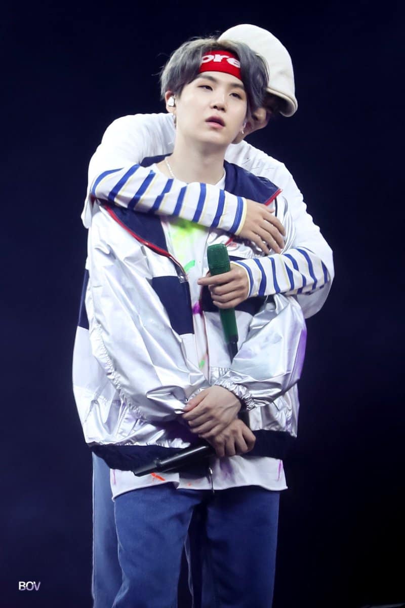 Bugünlerde Suga, onların her şeyden kurtulmalarına, hatta onu sahnede kucaklamalarına bile izin veriyor. Bu paha biçilmez anlardan biri, BTS’in Busan’daki iki günlük 5. Muster etkinliğinde yaşandı.