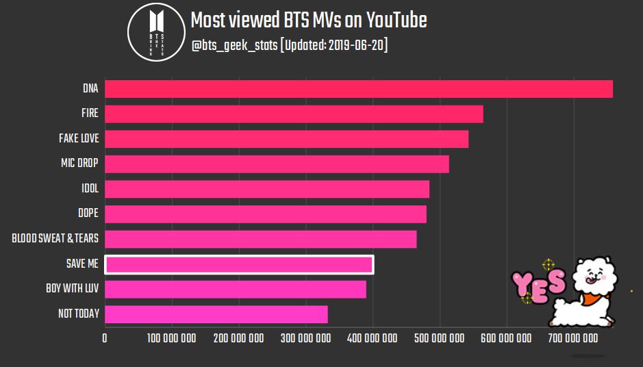 BTS, 15 Mayıs 2016 günü saat 10:00’da “Save ME” isimli müzik videosunu yayımlamıştı. Şarkının bu kilometre taşına ulaşması; 3 yıl, 1 ay, 4 gün ve 11 saatten fazla sürdüğü anlamına geliyor.
