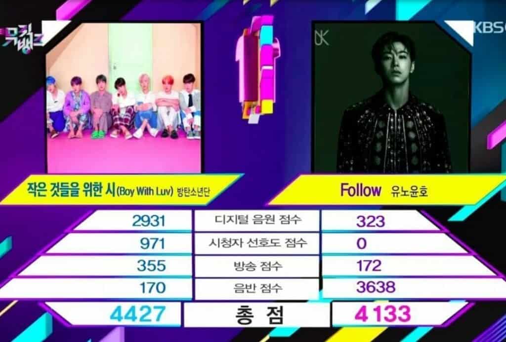 Birincilik için BTS ve Yunho aday oldu. Ancak “Boy with Luv” ile kazanan BTS oldu. Tebrikler BTS!