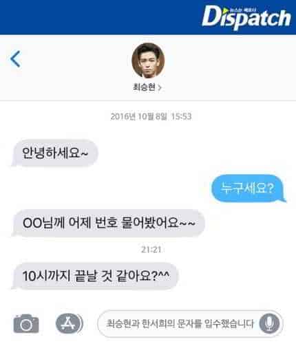 Dispatch burada Han Seo Hee ve T.O.P’ın ilişkisinin ilk başladığı 8 Ekim 2016’ya gitti. O gün Han Seo Hee tanımadığı bir numaradan mesaj aldı: