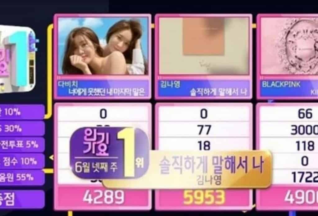 Kim Na Young “To Be Honest” ile 5,953 puan alarak birinci oldu. Bu sanatçının bu şarkısıyla kazanmış olduğu ilk galibiyettir. Tebrikler Kim Na Young!