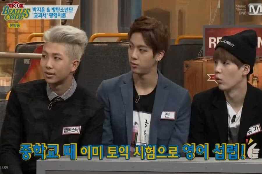 BTS, 2014 yılında “Beatles Kodu”nda yer aldığında RM, örnek bir lise öğrencisi olduğunu açıkladı. Kore dili, matematik, yabancı dil ve sosyal bilgiler alanlarında, lise birinci sınıf sınavlarında, ülkedeki öğrencilerin en iyi % 1.3’lük dilimine girdi. Programın sunucusu, bir ortaokul öğrencisi olarak İngilizce’ye hakim olduğunu da ortaya koydu.