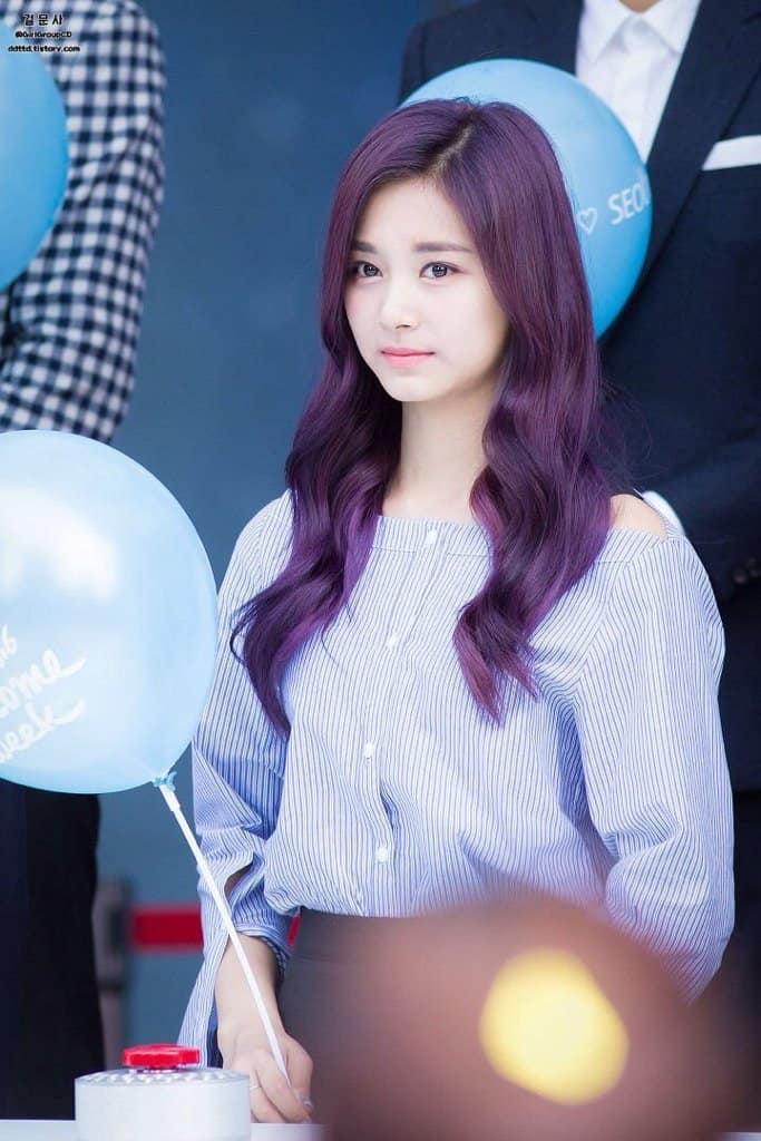9. TWICE Dahyun da mor saçla iyi görünüyor