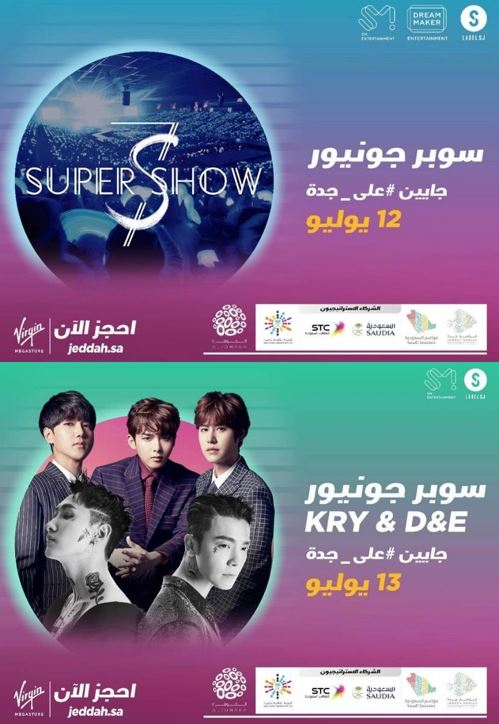 İlk konser, “Super Show 7S” Cidde’deki Kral Abdullah Spor Şehri’nde gerçekleşecek. Grup ayrıca, Arap bölgesindeki en iyi müzisyenlerin katıldığı 41 günlük bir etkinlik olan Cidden Sezon Festivali’nde sahne alacak.
