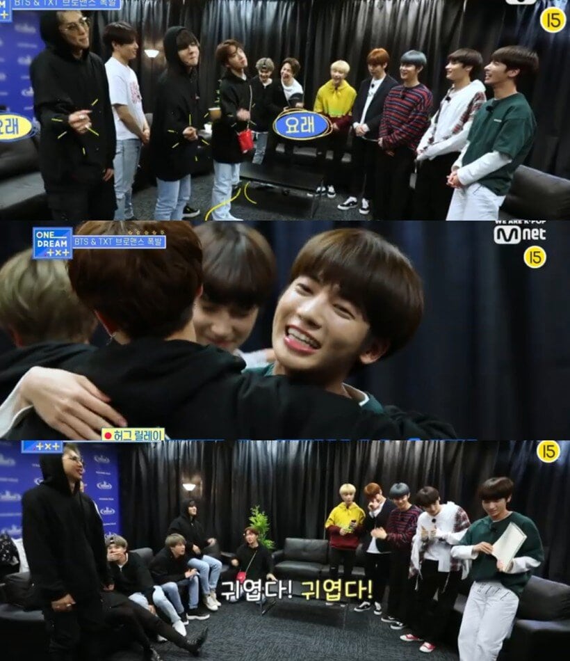 Çaylak grup, kıdemlilerini beklerken oldukça gergindi ancak BTS bekleme odasına girdiğinde, onları yüksek sesle ve sıcak bir şekilde karşıladı. Hep birlikte oturup, TXT’nin ABD’deki ilk showcase’i hakkında konuştular. TXT, New York’taki ilk gösteriye 2.100 kişi geldiğini belirtince, BTS üyeleri, “American Hustle Life” dönemini anımsadı ve kendilerinin, ABD’deki ilk konserlerine, insanları nasıl çağırdıklarını anlattılar.