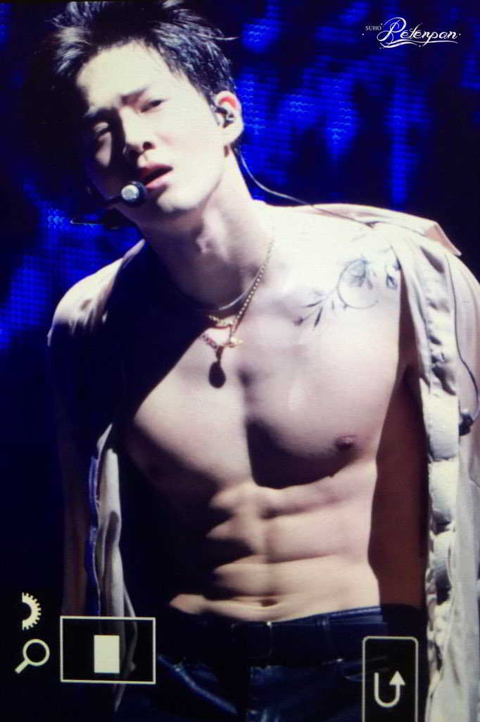 EXO üyelerinin ve fanların isimlerinin yer aldığı dövmesi sırtında bulunuyor. Aşağıdaki fotoğraf sahnedeki seksi performansından.