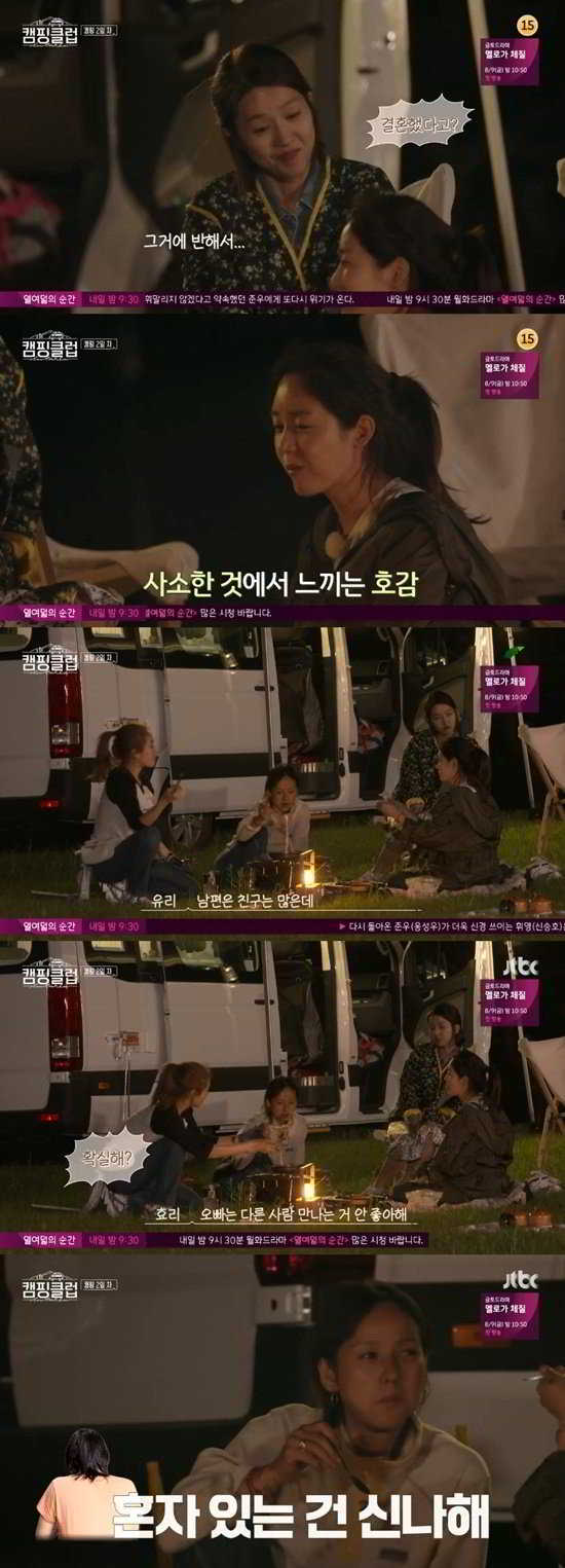 ‘Camping Club’ın 28 Temmuz’daki bölümünde Fin.K.L üyeleri, kocaları hakkında konuştu ve Sung Yuri, “Benim yerime şikayet ettiğinden (hakkımı savunduğundan) ona aşık olsum” diyerek başladı. Lee Hyori, “Kocam bir harita okumayı çok iyi biliyor. Onun hakkında bu hoşuma gitti” dedi.