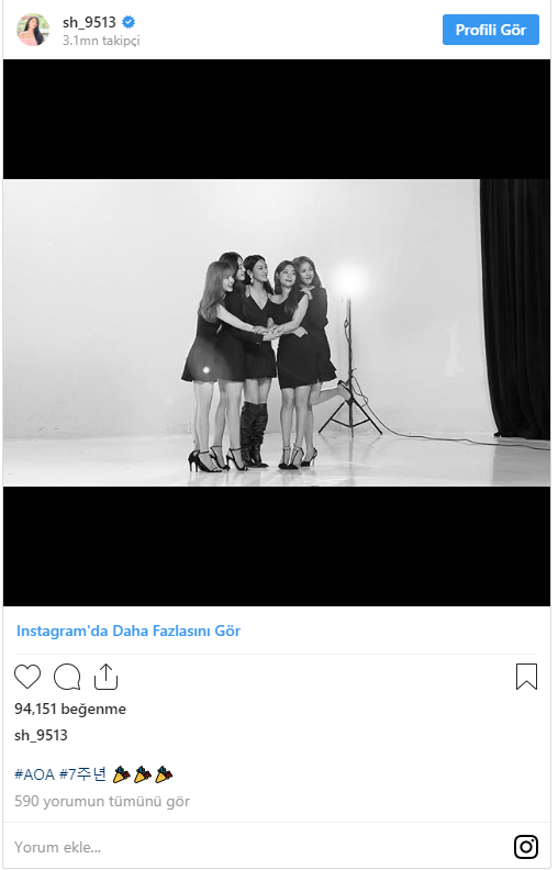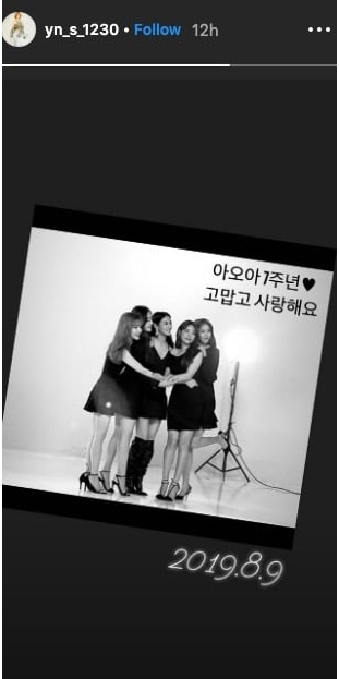 Grubun resmi Instagram hesabı, “AOA 7. yıldönümünde” başlıklı bir grup fotoğrafı yayınladı. “*ELVIS, her zaman birlikte olmaya devam edelim.” (*Aynı zamanda fandom isimleri.)