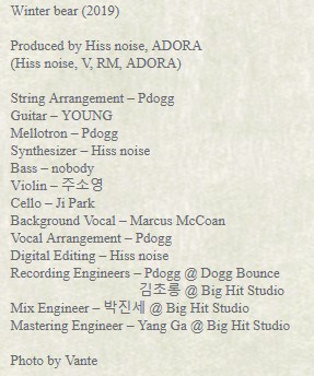 BTS member V releases his first full English solo song #WinterBearhttps://t.co/Q8XqS6stqv pic.twitter.com/nwAJEnyx1g