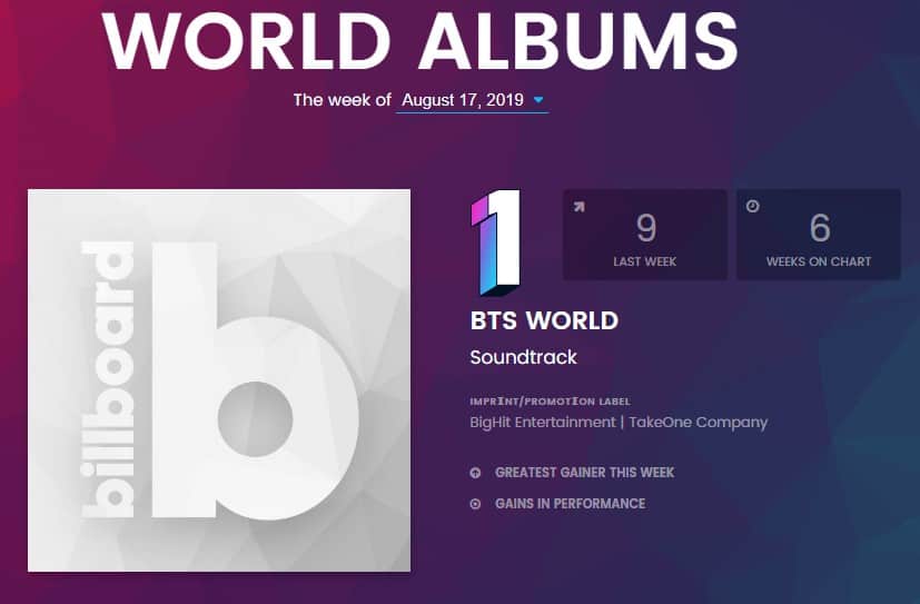 BTS World Soundtrack— Billboard Charts (@billboardcharts) August 13, 2019