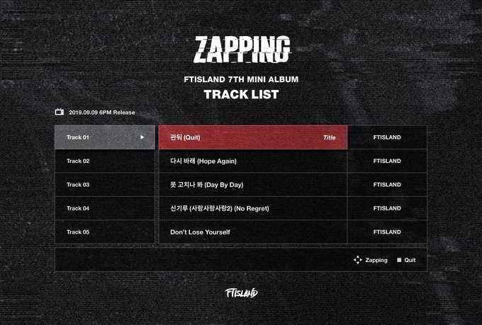 Kore saatine göre 2 Eylül’de grubun ajansı FNC Entartainment, grubun yedinci mini albümü “Zapping” için şarkı listesi yayınladı. Albümün ana başlık parçası “Quit” te dahil albümde toplam beş yeni şarkı yer alacak.