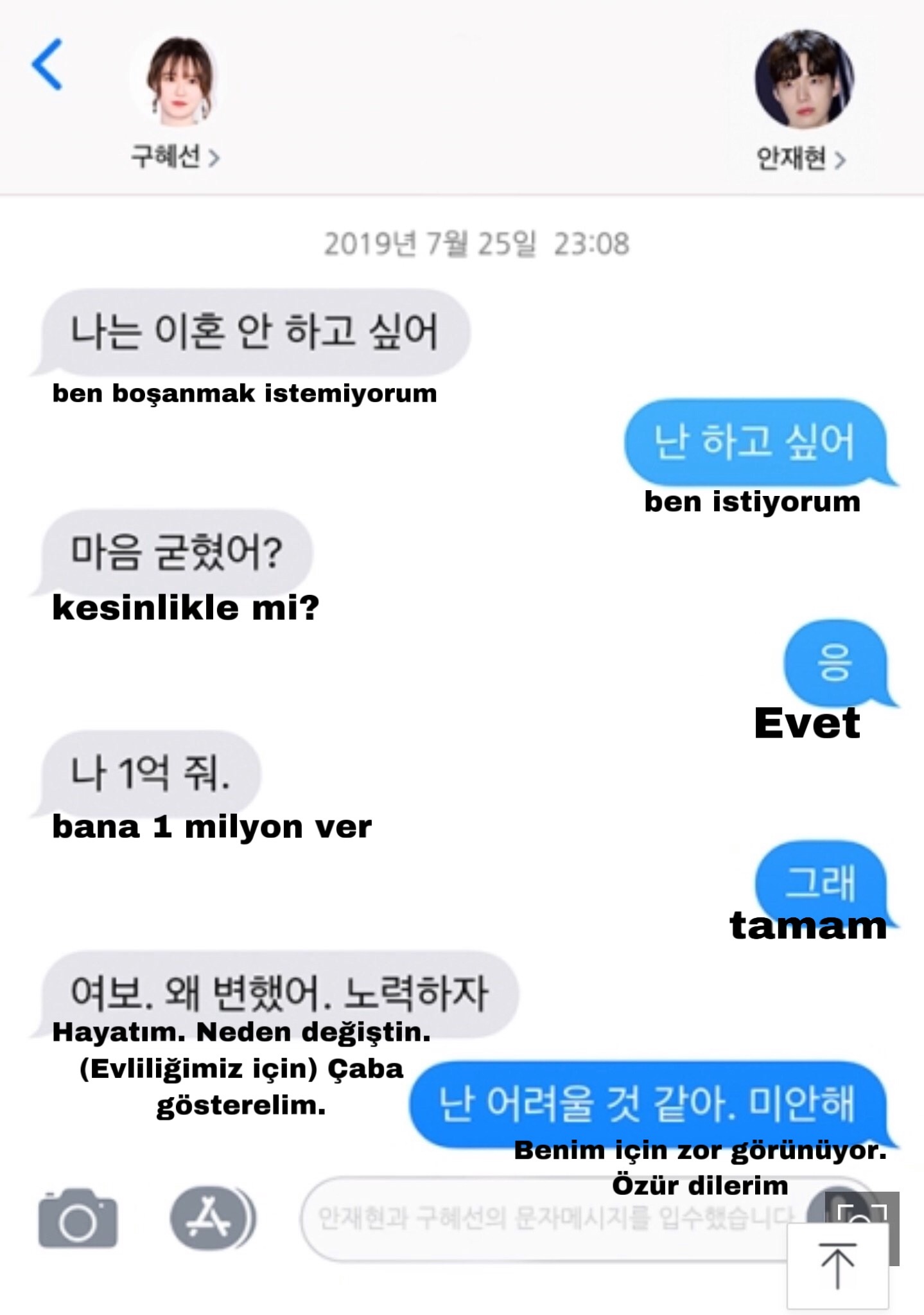 Ahn Jae Hyun- “A,” ve Ku Hye Sun- “K” olarak isimlendirilmiştir. Mesajları aşağıdan okuyabilirsiniz.