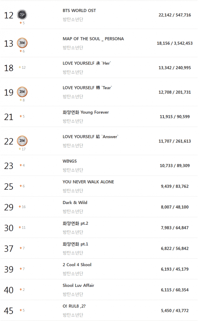 ?BTS OVERALL GAON PHYSICAL ALBUM SALES