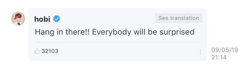 Ancak bazı hayranlar, bu “ önemli iş ” in J-Hope’un 5 Eylül’de bir hayranın yayınladığı gönderiye yaptığı yorumun ardından yeni müzikle bir ilgisi olup olmadığını merak etmeye başladılar.