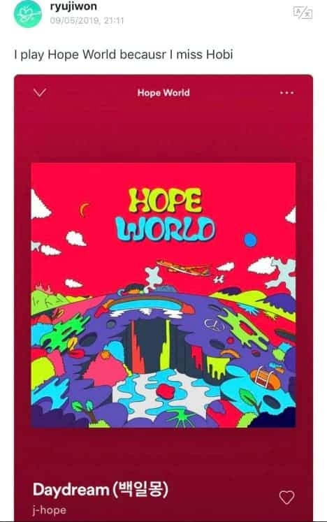 “ Hope World dinliyorum çünkü Hobi’yi özledim.”