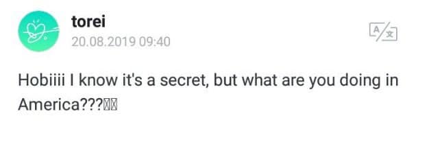 Ağustos ayında J-Hope, BTS’in ay boyu süren tatilinde özel bir program için Los Angeles’a uçmuştu. O zamandan beri, herkes J-Hope’un Los Angeles’da ne yaptığını merak ediyor. 20 Ağustos’ta, Weverse’den bir hayranı, ayrıntılarını açıklamasını umarak J-Hope’a planlarının ne olduğunu sordu.