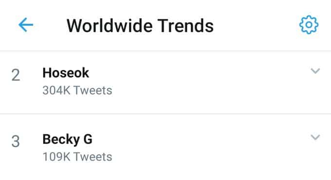 Becky G ve BTS’in bugünkü paylaşımlarından sonra, #BeckyHasAnotherSecret tagiyle birlikte, “Hoseok”, “Becky G” ve “Hobi G” ifadeleri dünya gündeminde üst sıralarda yer aldı.
