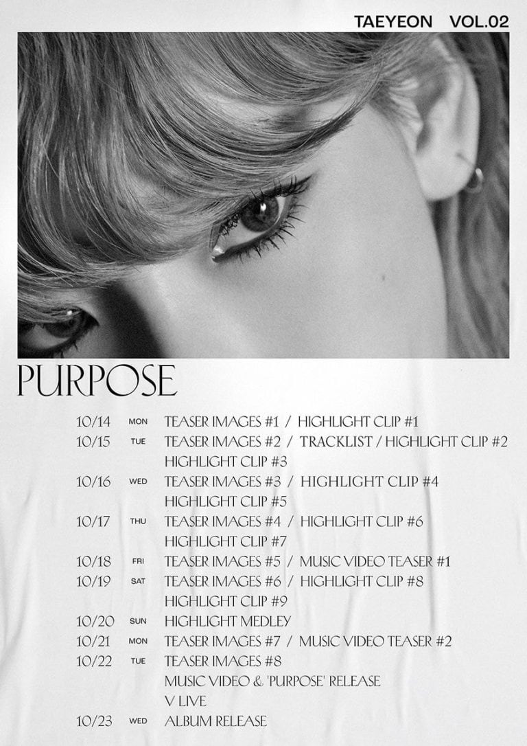 Taeyeon’un 2. tam albümü “Purpose” olarak adlandırılıyor. 22 Ekim’de online yayınlanacak.