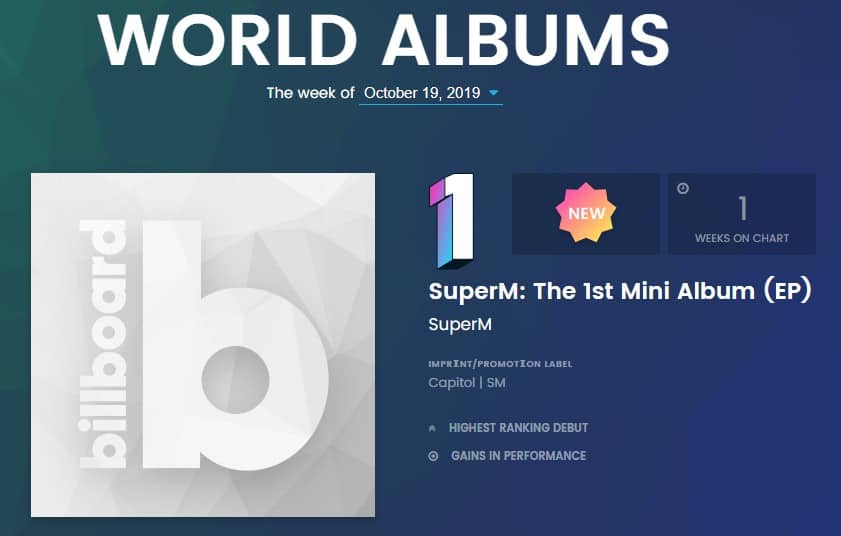 SuperM’in, “Jopping” başlık şarkısıyla yayımlanan “SuperM: The 1st Mini Album”ü, bu hafta listeye 1 numaradan giriş yaptı. Albüm aynı zamanda Billboard 200’de de zirvede yer aldı.