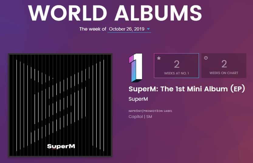 Billboard’un yayımladığı Dünya Albümleri Listesi’nde bu hafta SuperM, Billboard 200’de ilk 20’de yer alan mini çıkış albümüyle, ikinci haftasında 1 numarada yer almaya devam ediyor.