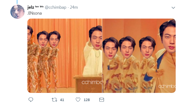 Bunun üzerine Jin’in uçarı hayranları (kendilerine “Seokjinnie’ler ya da “Jin kültü” diyorlar), bu şakayı bir adım ileri taşıyarak Jin’in yüzünü herkese ve her şeye yapıştırdılar!