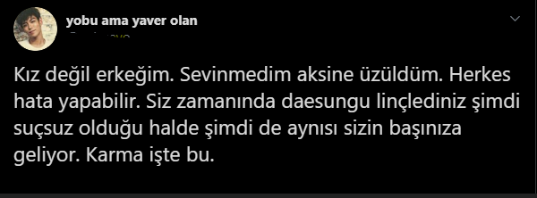 1. [+2205, -79] Ben bir hayranlarıyım ama bu konuda onu korumam. Umarım gelecekte dikkatli olur.