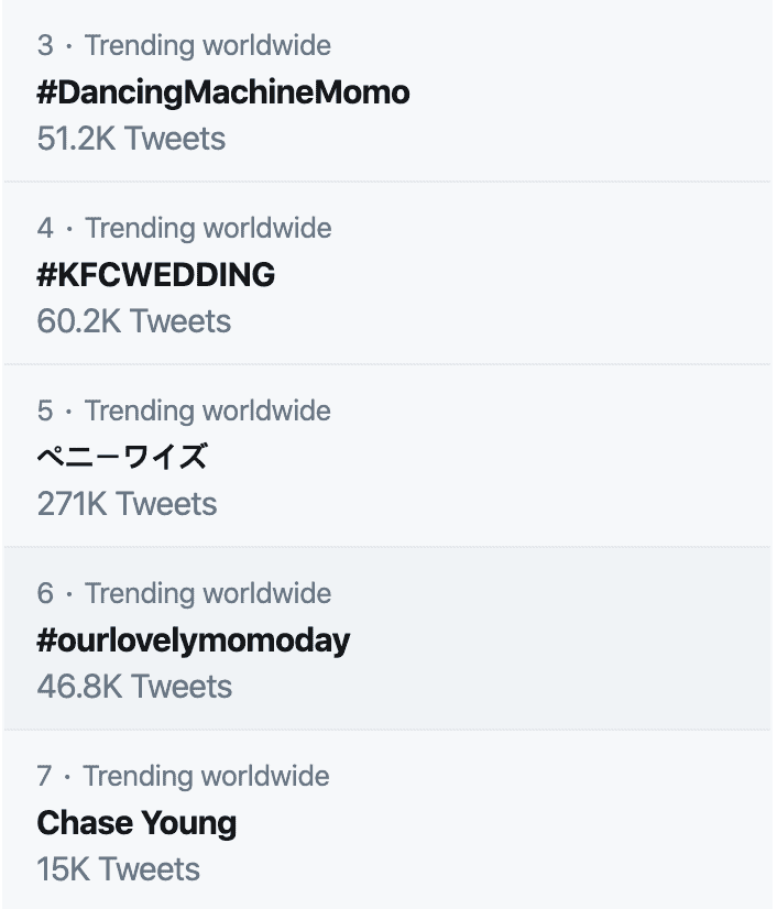 ONCE’lar #DancingMachineMomo ve #OurLovelyMomoDay taglerini kullanarak Momo’nun doğum gününü kutladı. Sonuç olarak Momo, trendlerle sırasıyla 3 ve 6.sırada yerini alıyor.