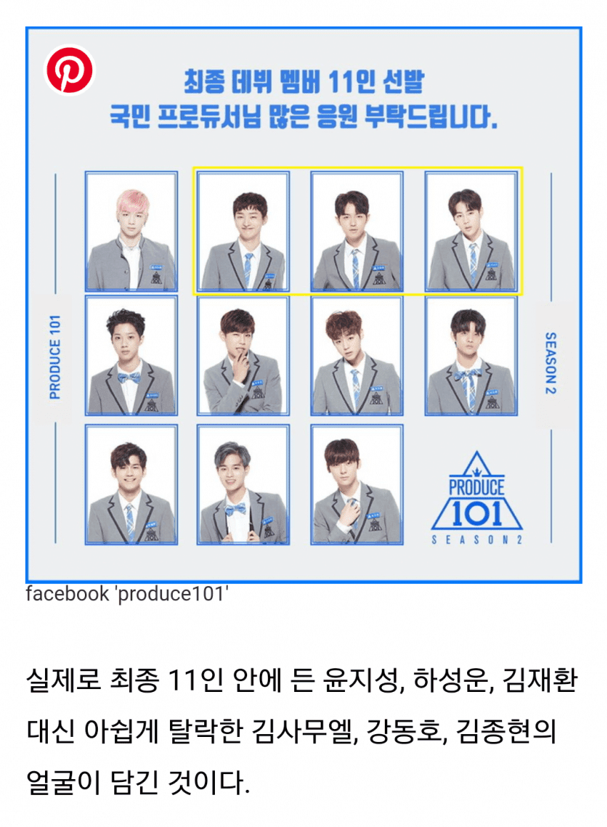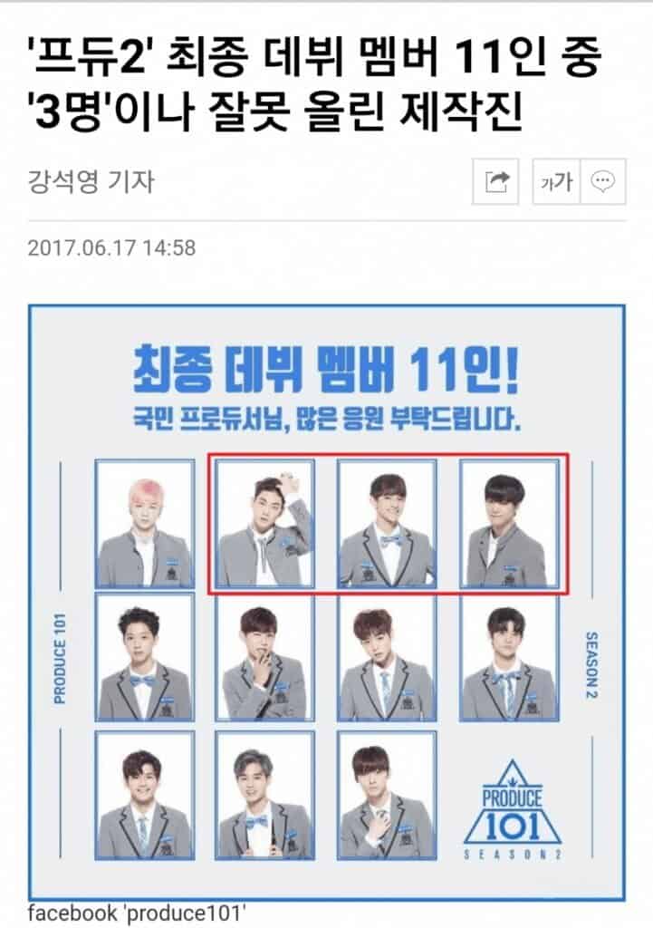 Maalesef, Yoon Jisung, Ha Sungwoon ve Kim Jaehwan yerine yanlışlıkla elenen Kim Samuel, Kang Dongho ve Kim Jonghyun’un olduğu resmi paylaşmışlardı.