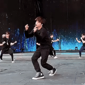 Jimin, baştan ayağa siyahlar içinde çok hoş görünürken, özellikle şık dansçı pantolonu çok dikkat çekti. Pantolonun; arka kısmını kaplayan, kapak benzeri bir parçasıyla eşsiz bir dizaynı vardı.